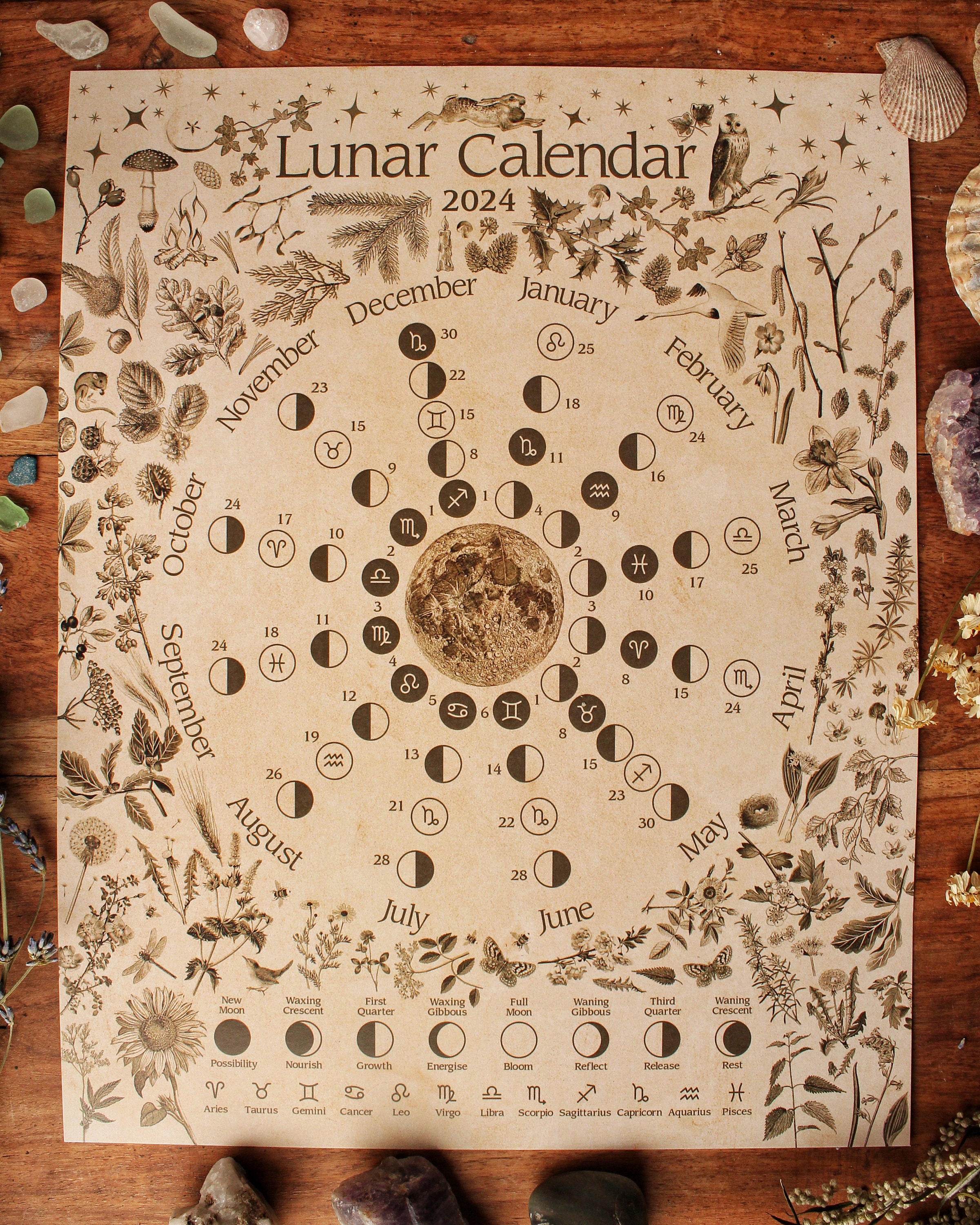 Source : www.amazon.comMedium Lunar Calendar 2024 8×10 Print, Moon Phases. Pagan. Moon